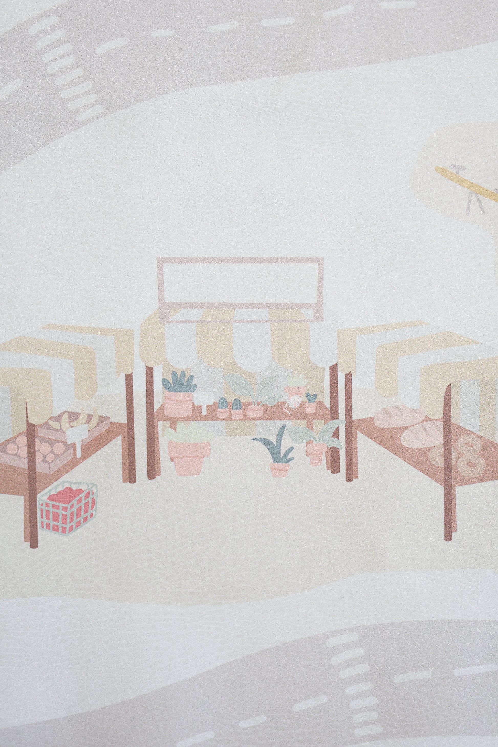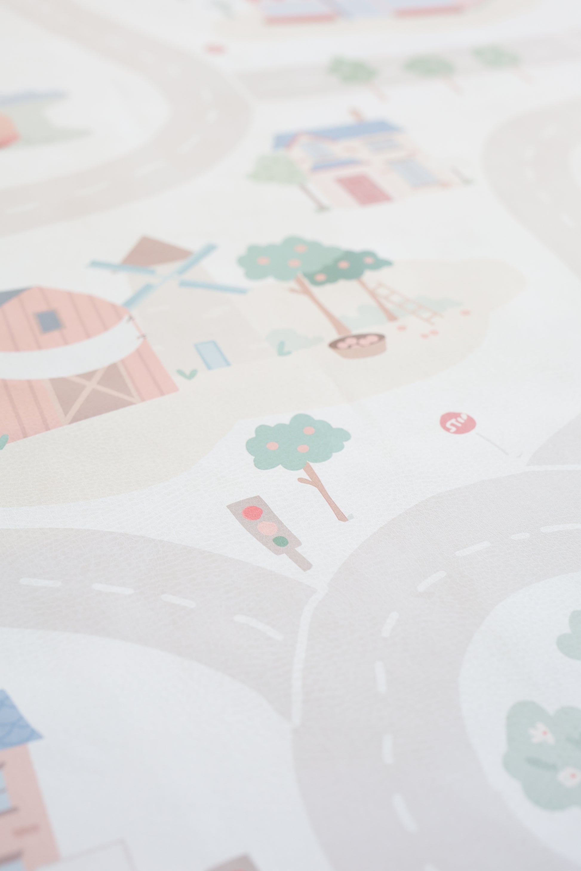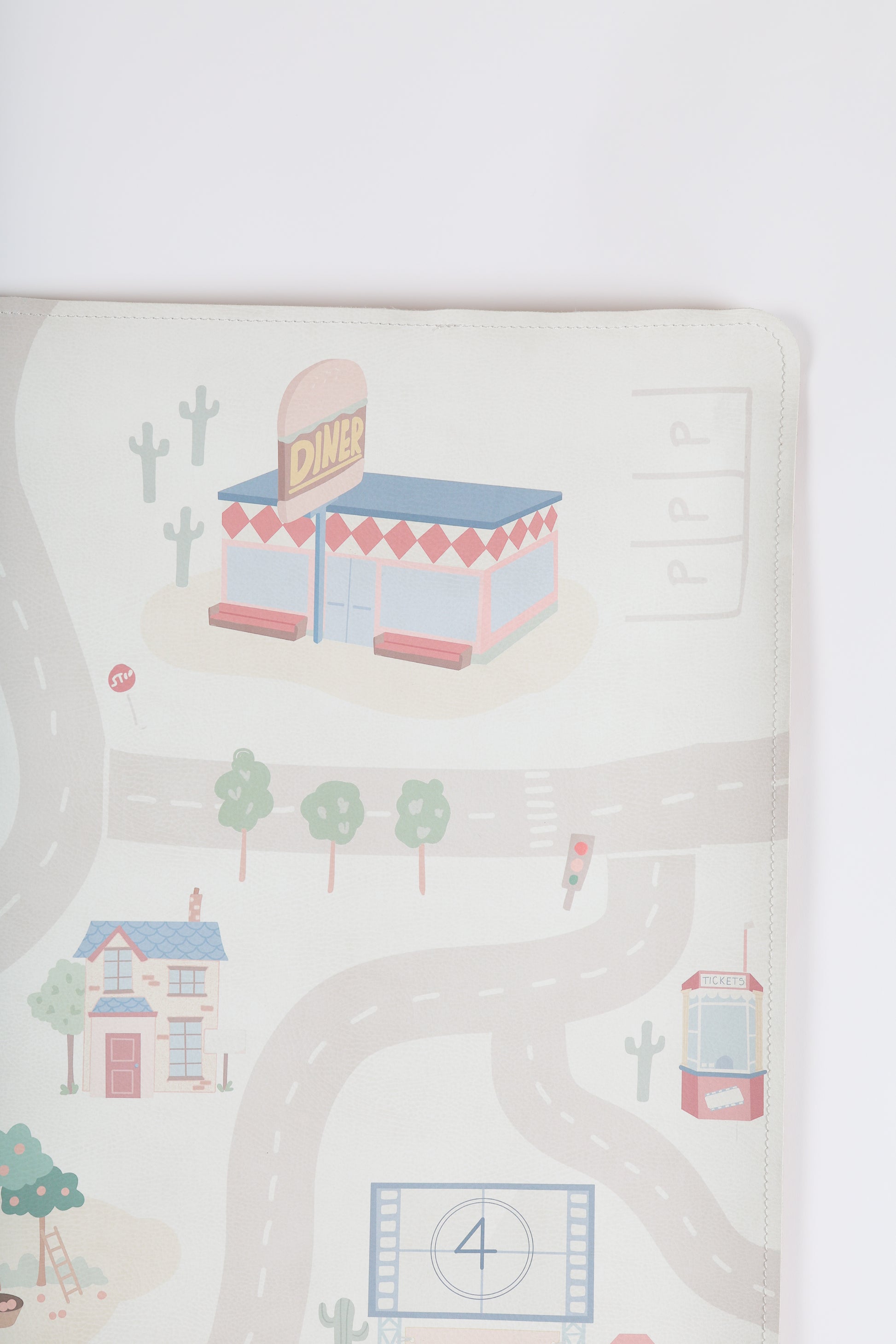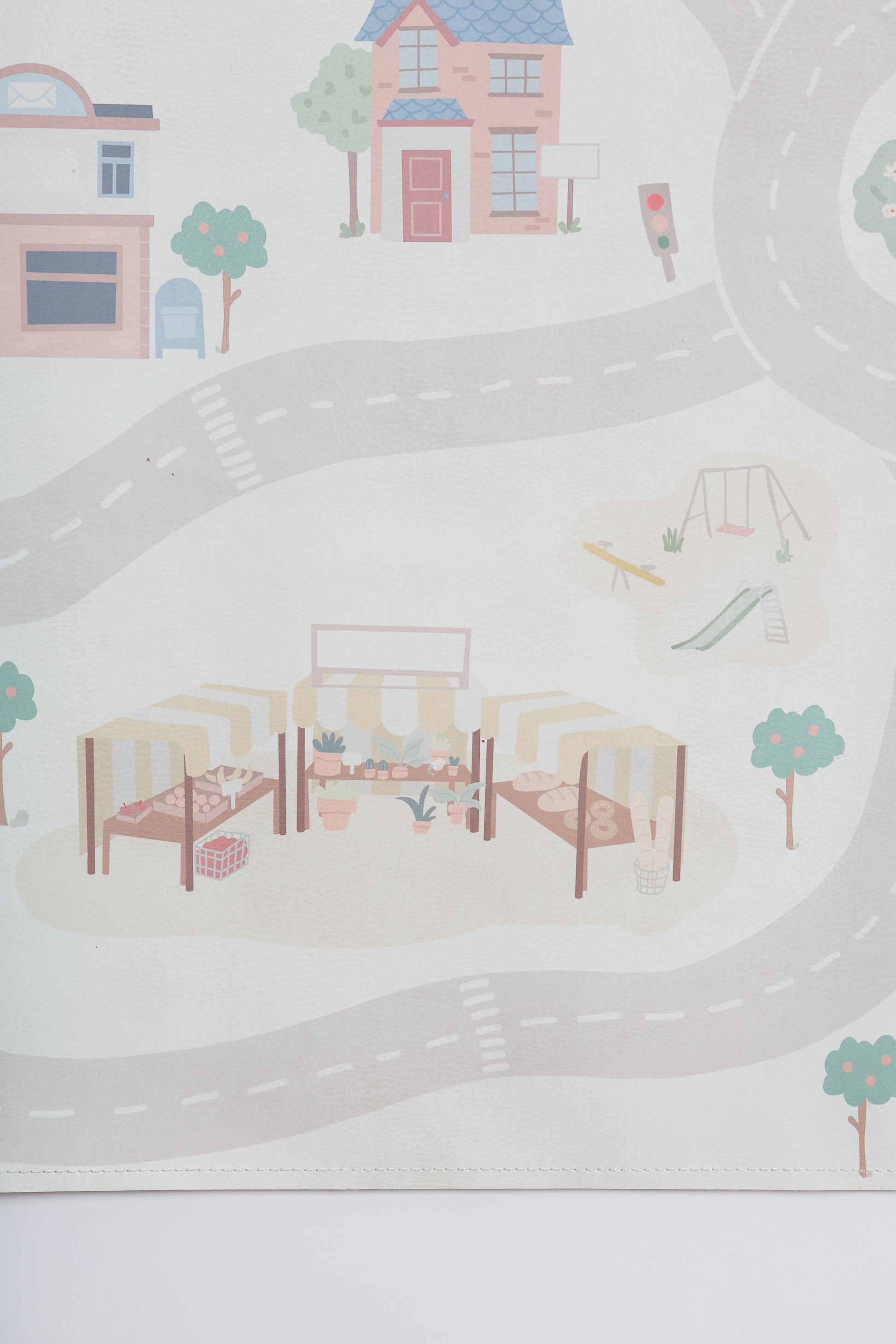 Inspired by the small towns you’ve loved, lived in, or just passed through, this play mat is a mini community waiting to be explored.