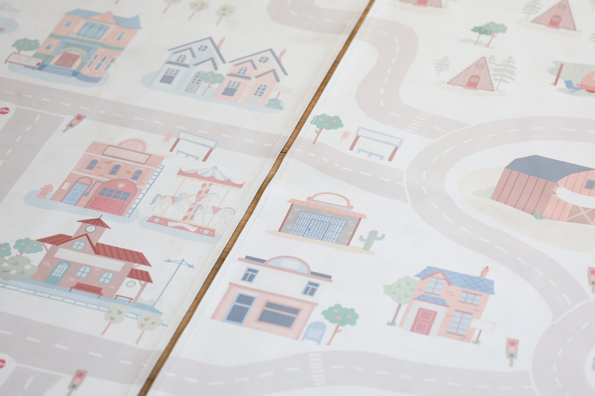 - Main Street Mat – A bustling town full of familiar favorites like a book store, bakery, gas station, and school—perfect for everyday adventures and pretend errands.